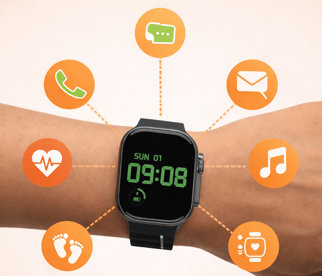 Monitorea tu actividad, controla tus notificaciones y mejora tu bienestar con un diseño elegante, batería de larga duración y funciones inteligentes que se adaptan a tu ritmo. El Reloj inteligente es la forma más simple y efectiva de llevar tu día bajo control.